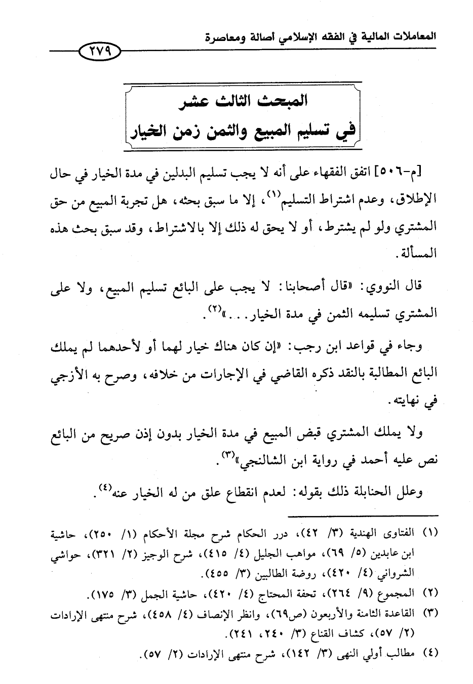 المبحث الثالث عشر في تسليم المبيع والثمن زمن الخيار
