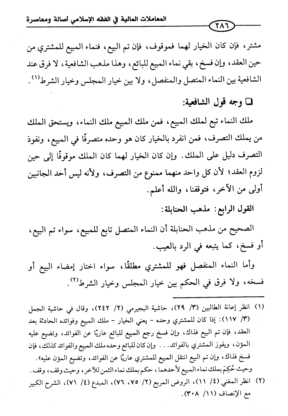 (¬١) انظر إعانة الطالبين (٣/ ٢٩)، حاشية البجيرمي (٢/ ٢٤٢)، وقال في حاشية الجمل (٣/ ١١٧): إذا كان للمشتري وحده -يعني الجار- ملك المبيع وفوائده الحادثة بعد العقد، فإن تم البيع فذاك، وإن فسخ رجع المبيع للبائع عاريًا عن الفوائد، وتضيع عليه المؤن، ويفوز المشتري بالفوائد ... وإن كان للبائع وحده ملك المبيع والفوائد كذلك، فإن فسخ فذاك، وإن تم البيع انتقل المبيع للمشتري عاريًا عن الفوائد، وتضيع المؤن عليه".