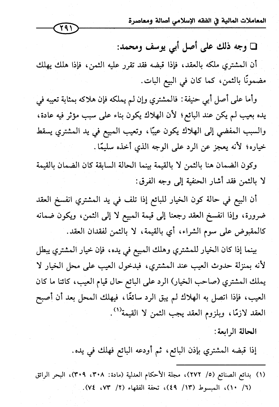 (¬١) بدائع الصنائع (٥/ ٢٧٢)، مجلة الأحكام العدلية (مادة: ٣٠٨، ٣٠٩)، البحر الرائق (٦/ ١٠)، المبسوط (١٣/ ٤٩)، تحفة الفقهاء (٢/ ٧٣، ٧٤).