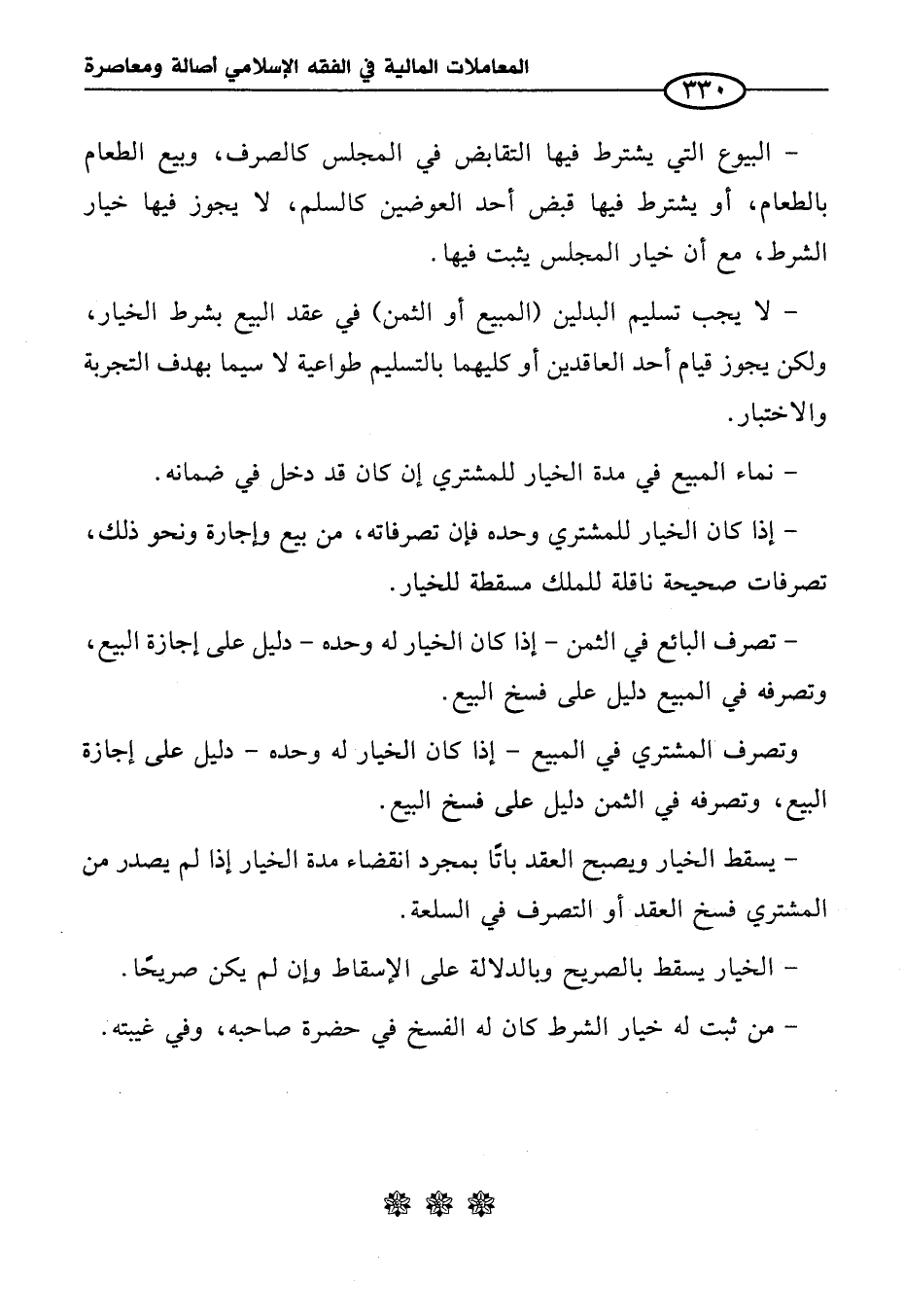 - يسقط الخيار ويصبح العقد باتًا بمجرد انقضاء مدة الخيار إذا لم يصدر من المشتري فسخ العقد أو التصرف في السلعة.