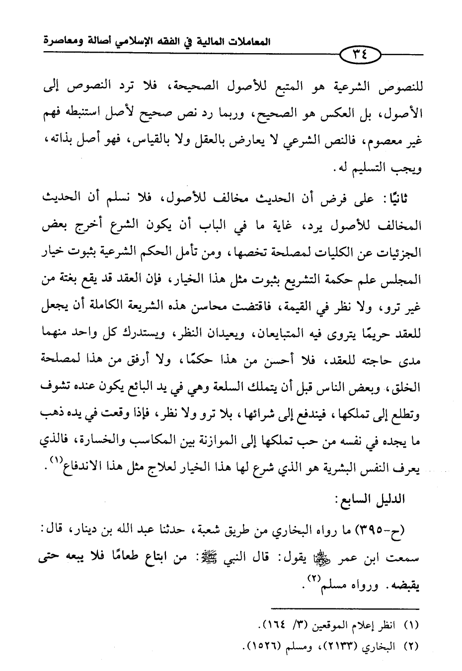 (ح-٣٩٥) ما رواه البخاري من طريق شعبة، حدثنا عبد الله بن دينار، قال: سمعت ابن عمر -رضي الله عنه- يقول: قال النبي - صلى الله عليه وسلم -: من ابتاع طعامًا فلا يبعه حتى يقبضه. ورواه مسلم (¬٢).