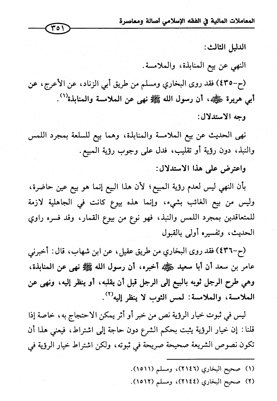 (ح-٤٣٥) فقد روى البخاري ومسلم من طريق أبي الزناد، عن الأعرج، عن أبي هريرة - رضي الله عنه -، أن رسول الله - صلى الله عليه وسلم - نهى عن الملامسة والمنابذة (¬١).
