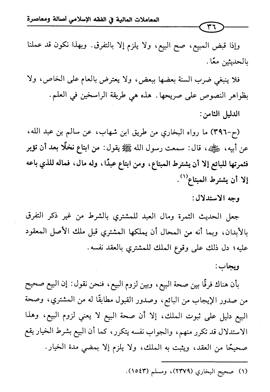 (ح-٣٩٦) ما رواه البخاري من طريق ابن شهاب، عن سالم بن عبد الله، عن أبيه، -رضي الله عنه-، قال: سمعت رسول الله - صلى الله عليه وسلم - يقول: من ابتاع نخلًا يعد أن توبر فثمرتها للبائع إلا أن يشترط المبتاع، ومن ابتاع عبدًا، وله مال، فماله للذي باعه إلا أن يشترط المبتاع (¬١).