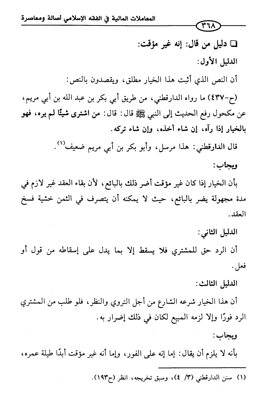 (ح-٤٣٧) ما رواه الدارقطني، من طريق أبي بكر بن عبد الله بن أبي مريم، عن مكحول رفع الحديث إلى النبي - صلى الله عليه وسلم - قال: قال: من اشترى شيئًا لم يره، فهو بالخيار إذا رآه، إن شاء أخذه، وإن شاء تركه.