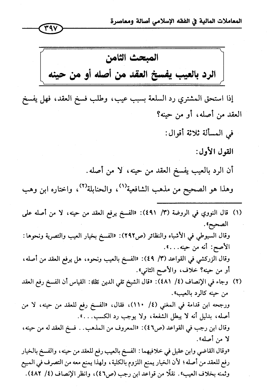 المبحث الثامن الرد بالعيب يفسخ العقد من أصله أو من حينه