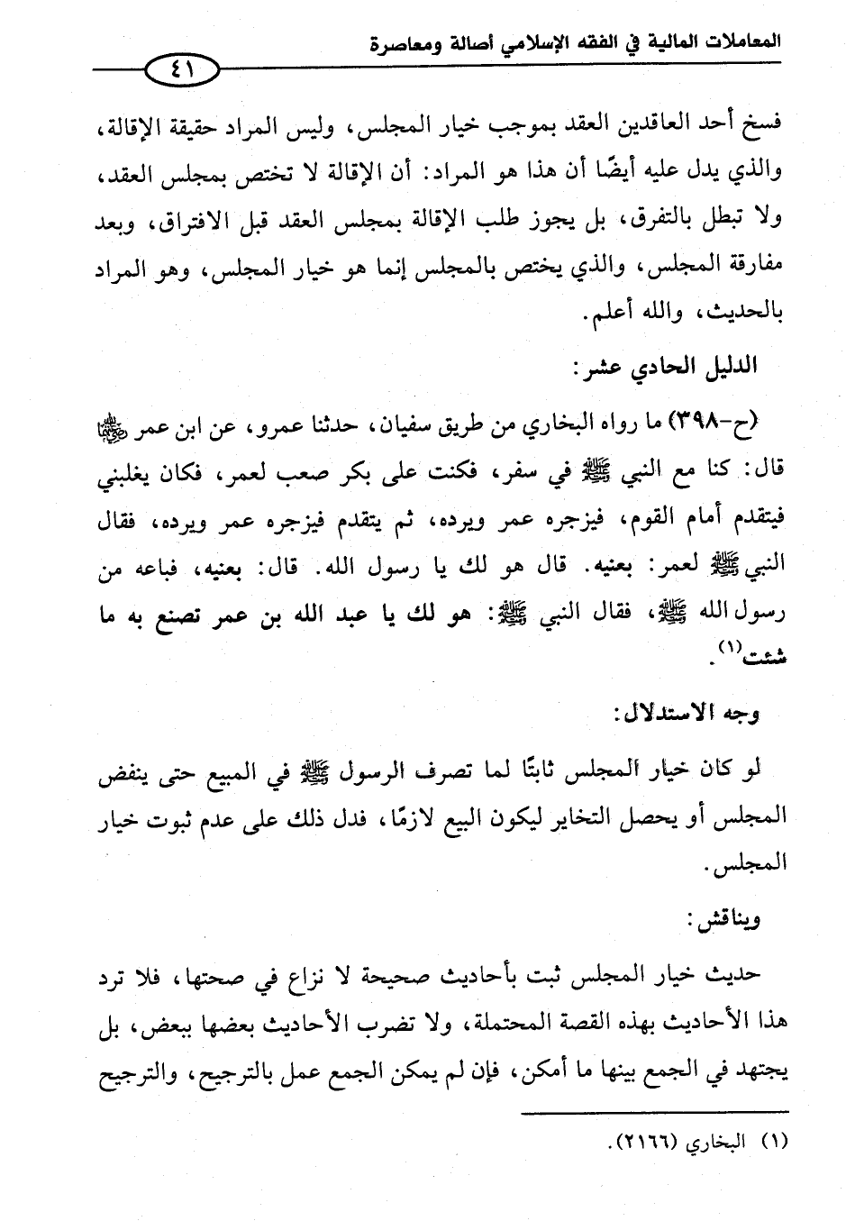 لو كان خيار المجلس ثابتًا لما تصرف الرسول - صلى الله عليه وسلم - في المبيع حتى ينفض المجلس أو يحصل التخاير ليكون البيع لازمًا، فدل ذلك على عدم ثبوت خيار المجلس.
