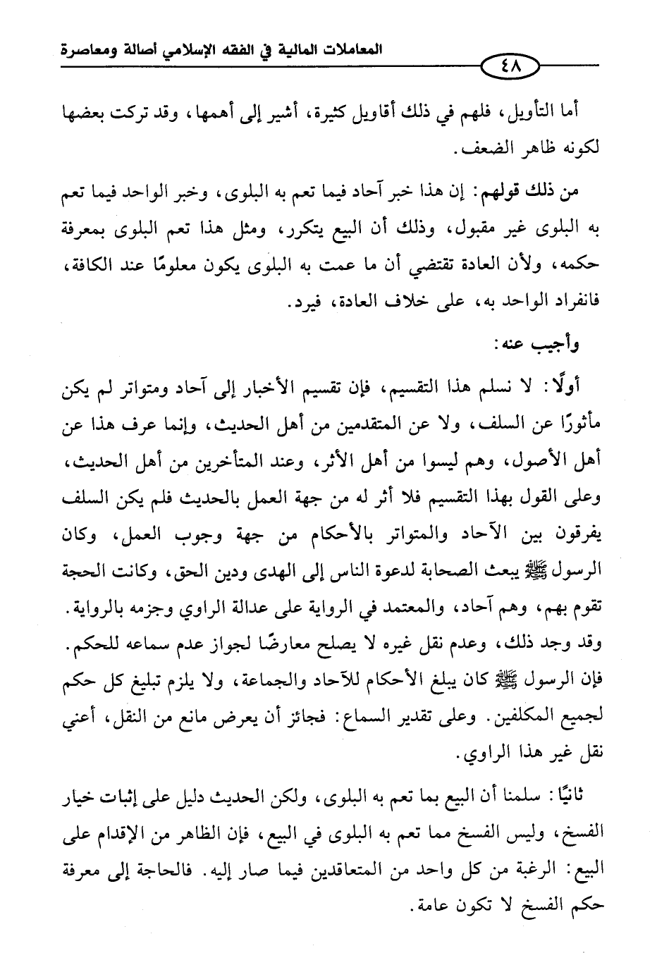 ثانيًا: سلمنا أن البيع بما تعم به البلوى، ولكن الحديث دليل على إثبات خيار الفسخ، وليس الفسخ مما تعم به البلوى في البيع، فإن الظاهر من الإقدام على البيع: الرغبة من كل واحد من المتعاقدين فيما صار إليه. فالحاجة إلى معرفة حكم الفسخ لا تكون عامة.