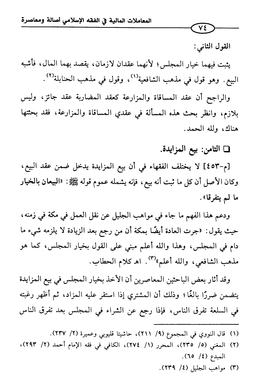 ودعم هذا الفهم ما جاء في مواهب الجليل عن نقل العمل في مكة في زمنه، حيث يقول: "جرت العادة أيضًا بمكة أن من رجع بعد الزيادة لا يلزمه شيء ما دام في المجلس، وهذا والله أعلم مبني على القول بخيار المجلس، كما هو مذهب الشافعي، والله أعلم" (¬٣). اهـ كلام الحطاب.