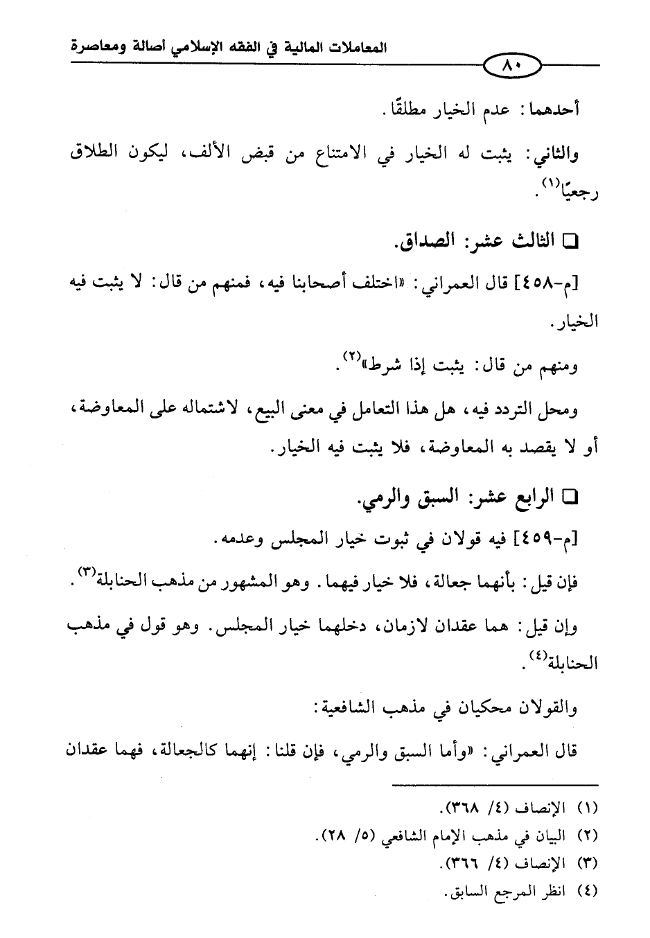 [م - ٤٥٨] قال العمراني: "اختلف أصحابنا فيه، فمنهم من قال: لا يثبت فيه الخيار.