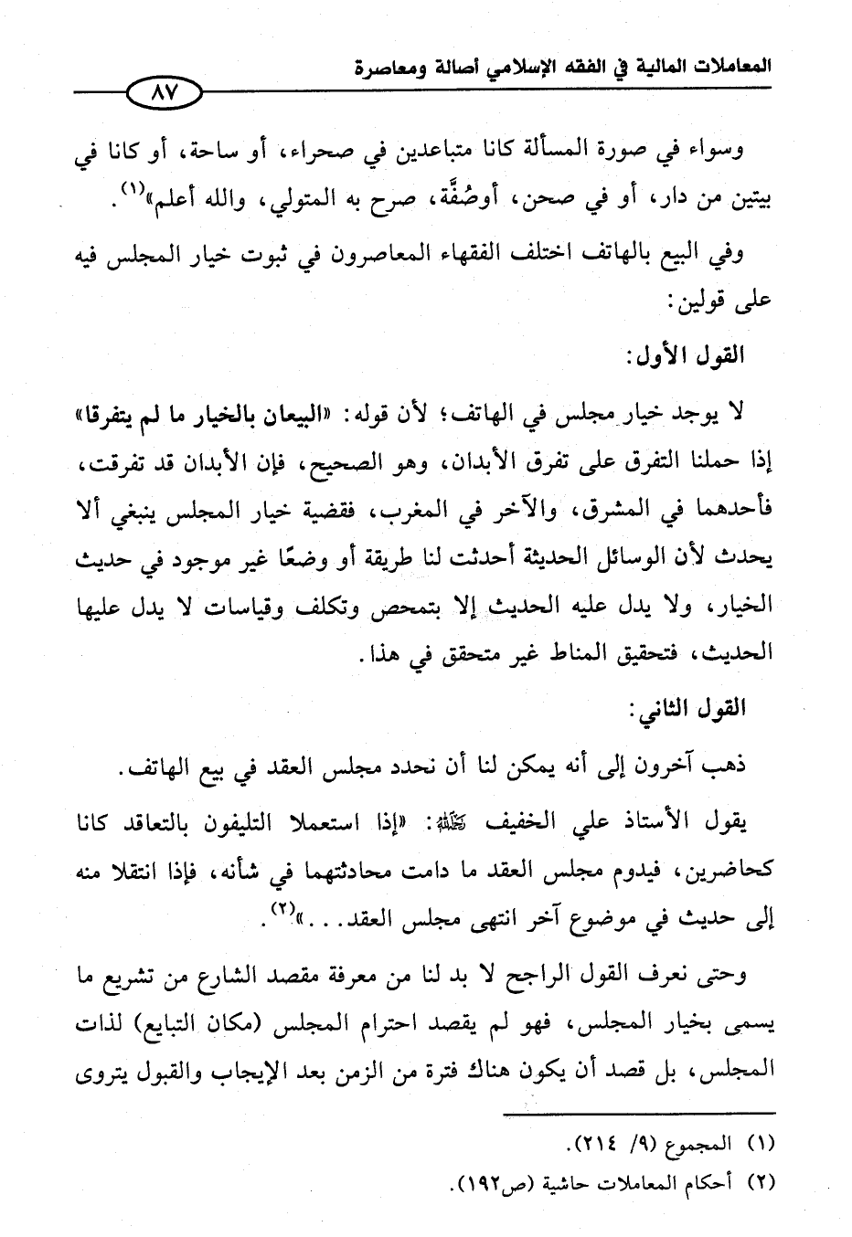 (¬٢) أحكام المعاملات حاشية (ص ١٩٢).