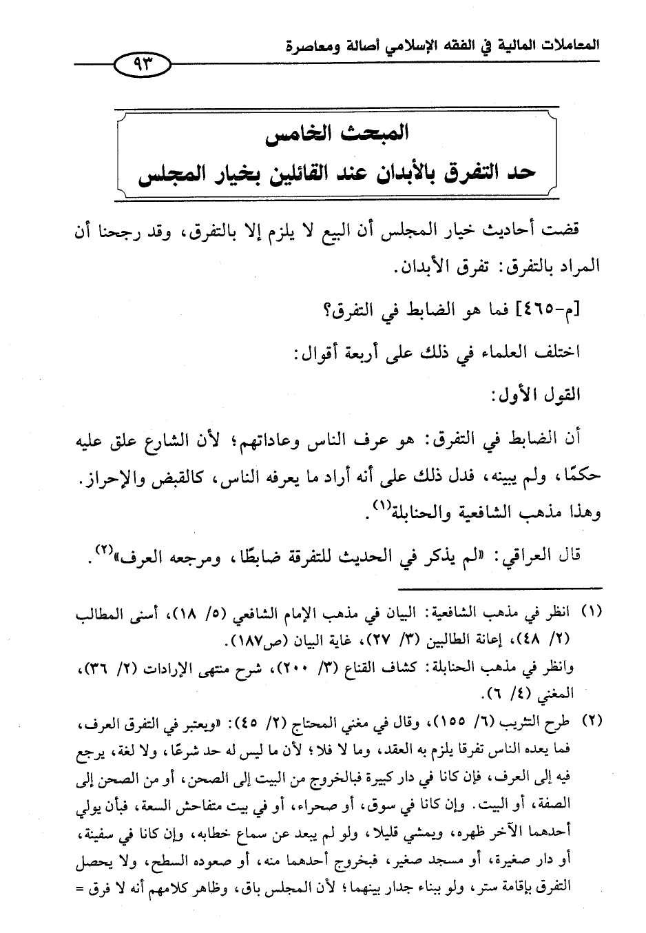 المبحث الخامس حد التفرق بالأبدان عند القائلين بخيار المجلس