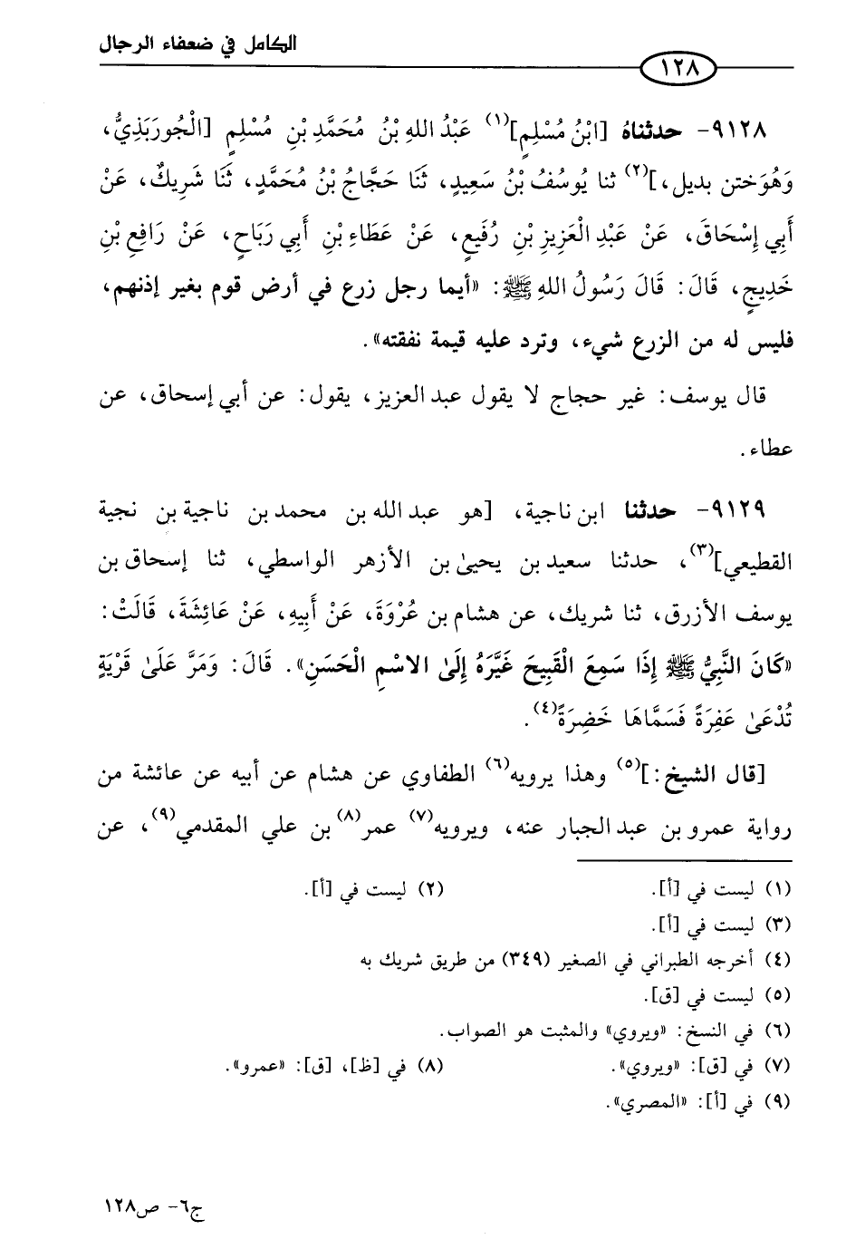 كتاب الكامل في ضعفاء الرجال لابن عدي - الرشد (اسم الجزء: 6)