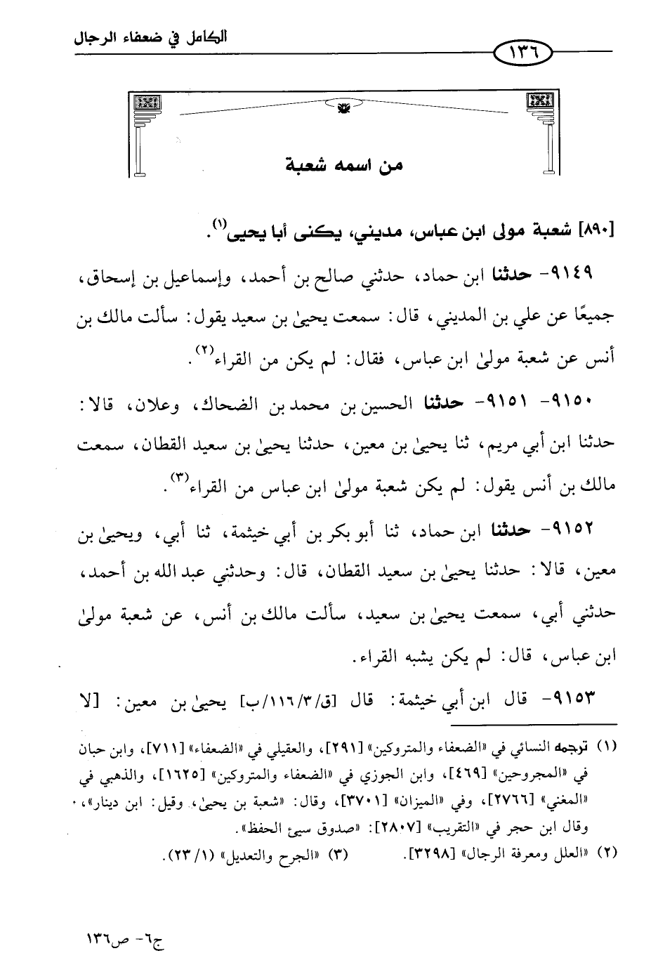 كتاب الكامل في ضعفاء الرجال لابن عدي - الرشد (اسم الجزء: 6)