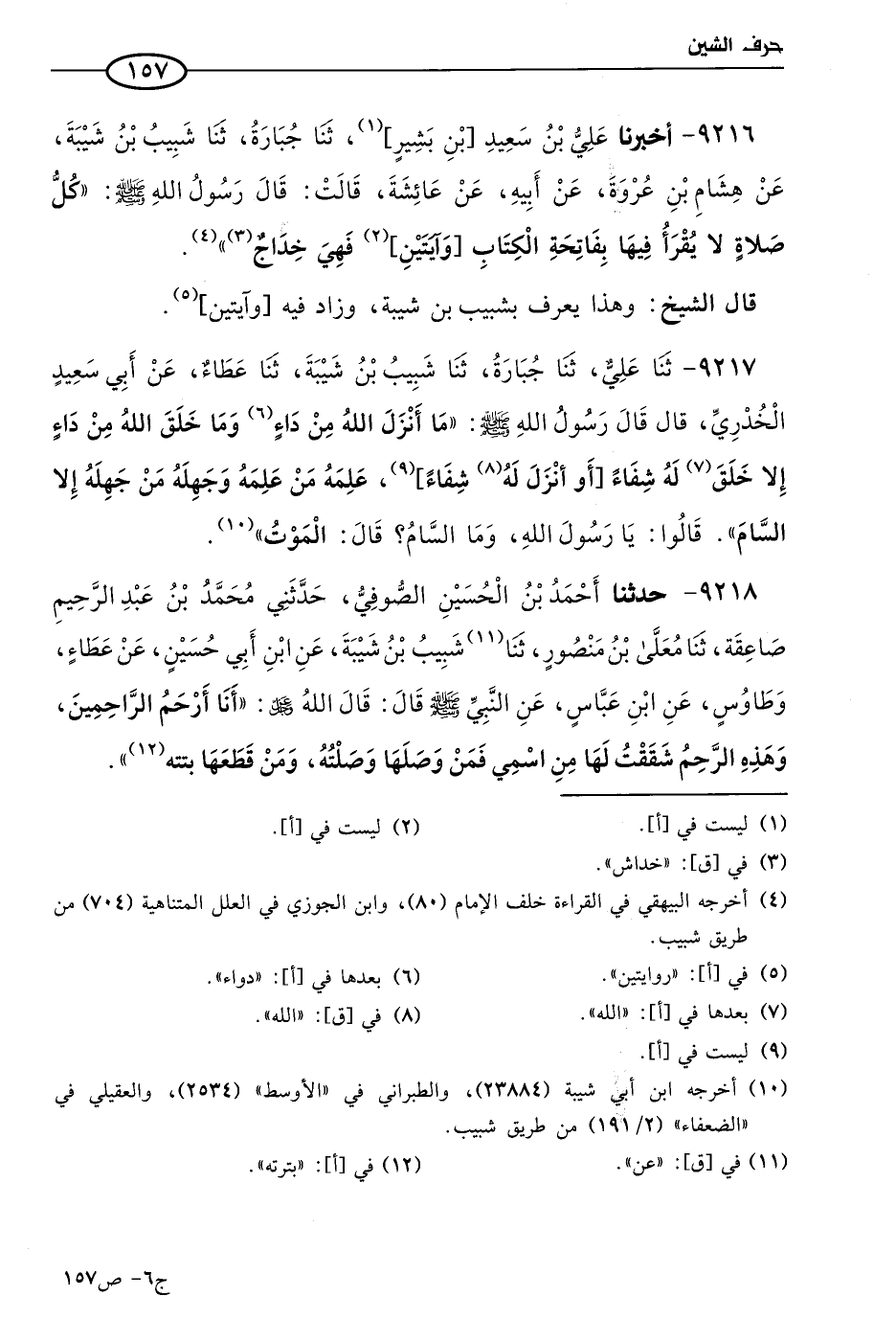 9218 - حَدثنا أحمد بن الحسين الصُّوفي، حَدَّثني مُحمد بن عَبد الرحيم صاعقة، حَدثنا معلي بن منصور، حَدثنا شبيب بن شيبة، عن ابن أبي حسين، عن عطاء، وطاوُوس، عن ابن عباس، عن النبي صَلي الله عَليه وسلم، قال: قال الله عَزّ وجَلَّ: أنا أرحم الراحمين، وهذه الرحم شققت لها من اسمي، فمن وصلها وصلته، ومن قطعها بترته.