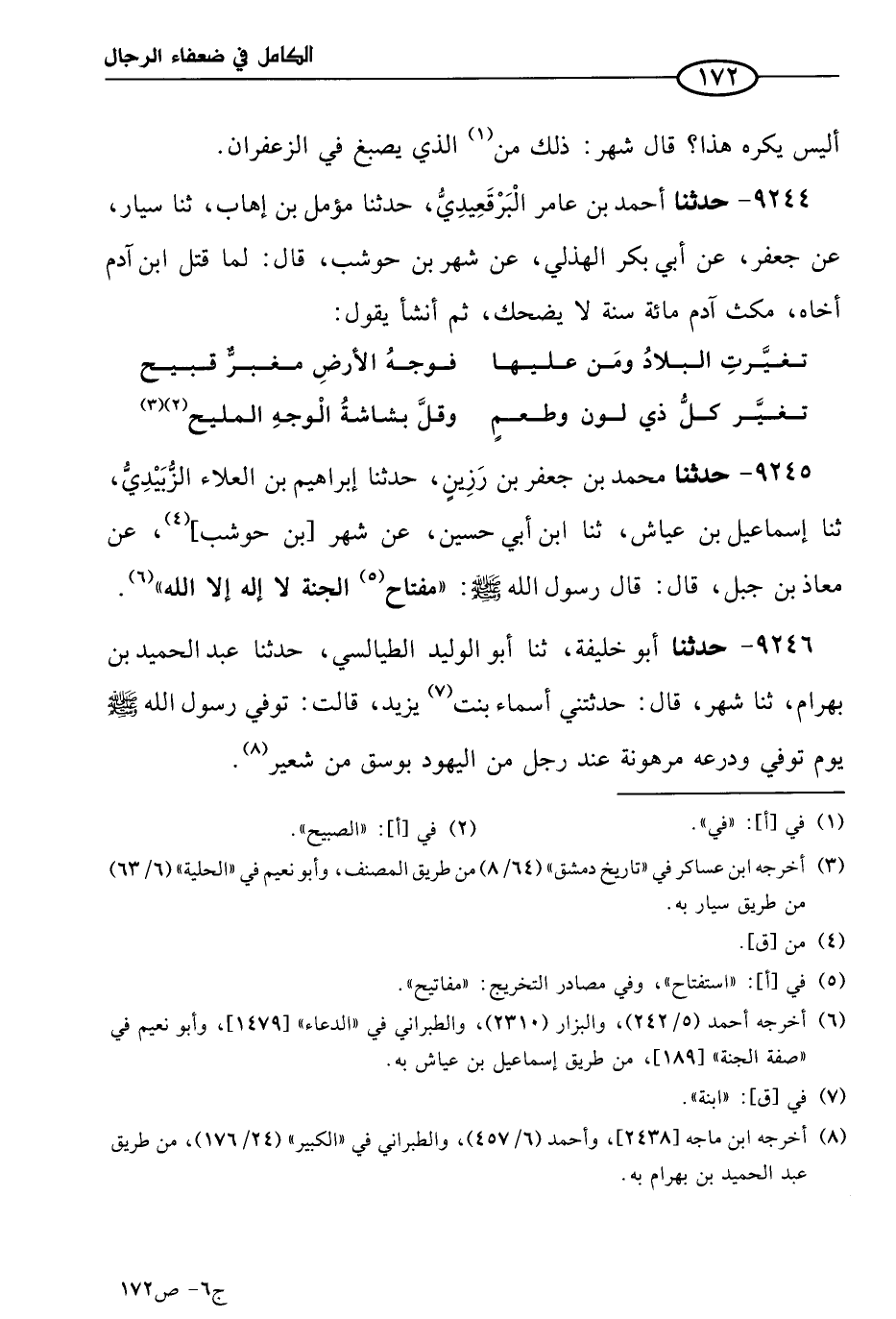 كتاب الكامل في ضعفاء الرجال لابن عدي - الرشد (اسم الجزء: 6)