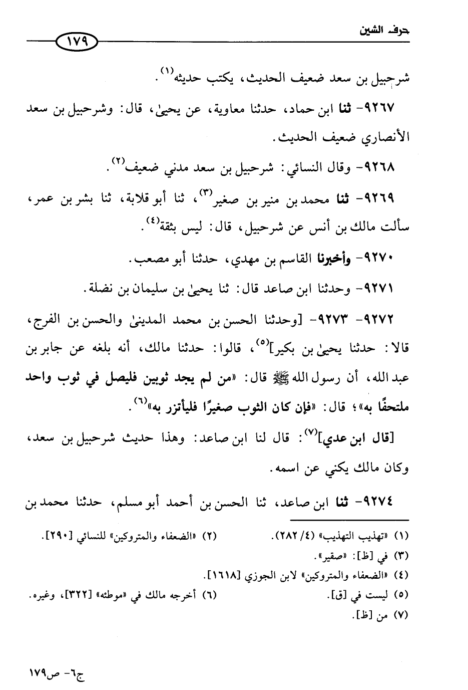 9268 - وقال النسائي: شرحبيل بن سعد مدني ضعيف.