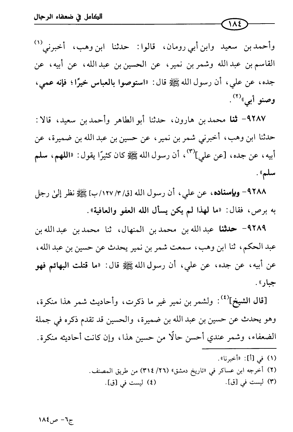 كتاب الكامل في ضعفاء الرجال لابن عدي - الرشد (اسم الجزء: 6)