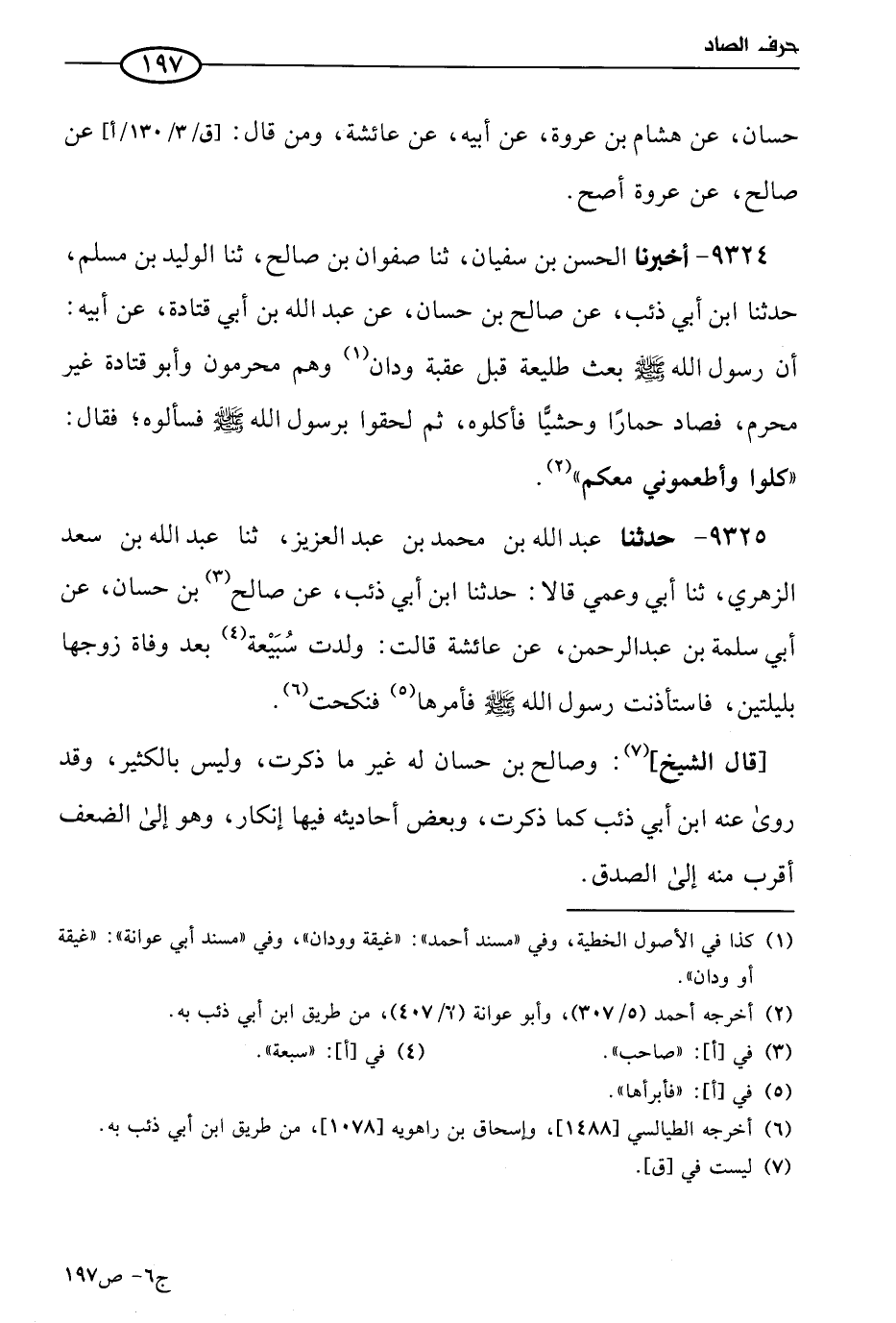 9324 - أخبرنا الحسن بن سفيان، حَدثنا صفوان بن صالح، حَدثنا الوليد بن مسلم، حَدثنا ابن أبي ذئب عن صالح بن حسان عن عَبد الله بن أبي قتادة، عن أبيه أن رسول الله صَلي الله عَليه وسَلم بعث طليعة قبل عقبة ودان وهم محرمون، وأَبو قتادة غير محرم فصاد حمارا وحشيا فأكلوه ثم لحقوا برسول الله صَلي الله عَليه وسلم فسألوه فقال: كلوا وأطعموني معكم.