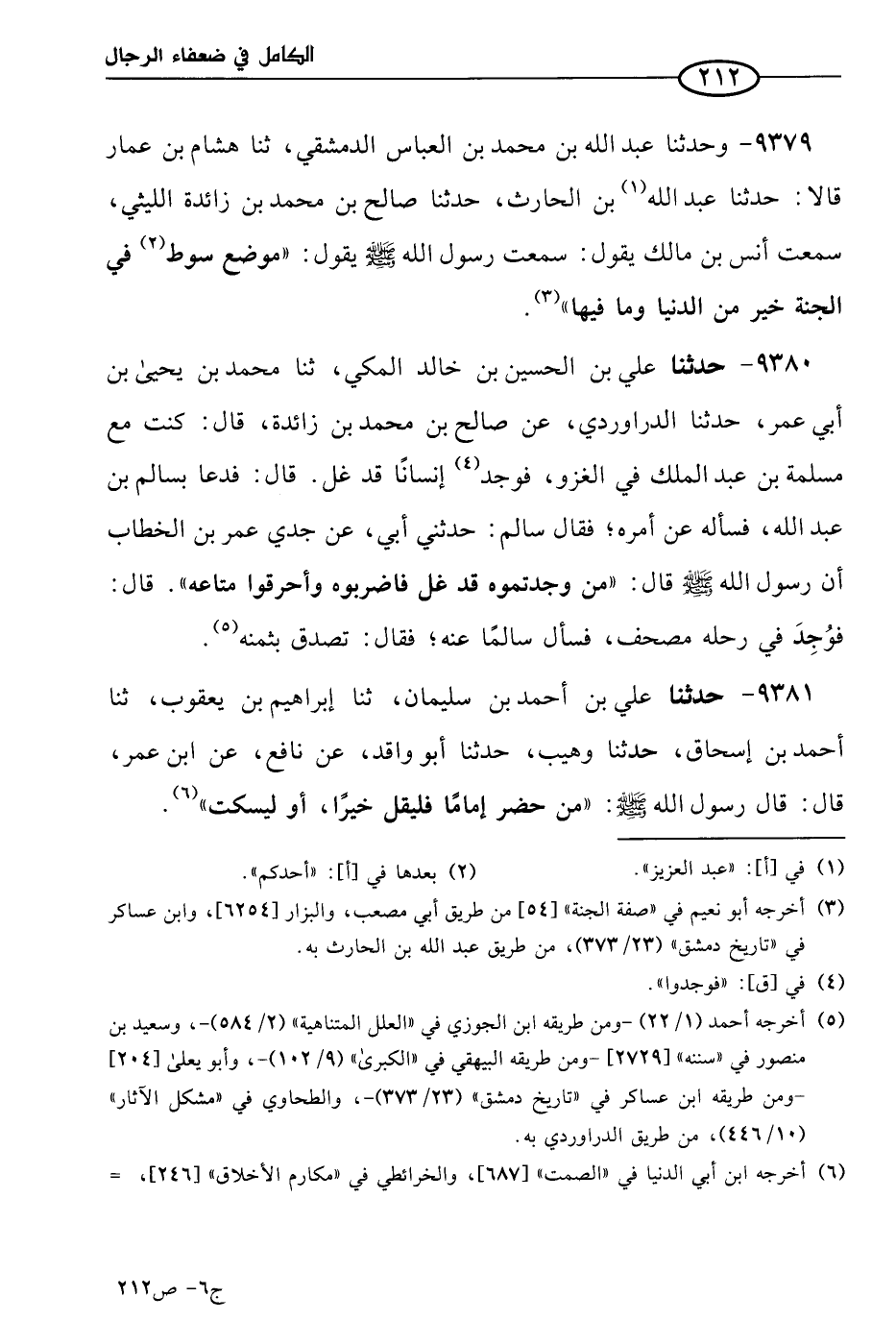 كتاب الكامل في ضعفاء الرجال لابن عدي - الرشد (اسم الجزء: 6)