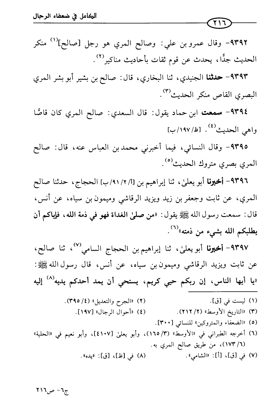 كتاب الكامل في ضعفاء الرجال لابن عدي - الرشد (اسم الجزء: 6)
