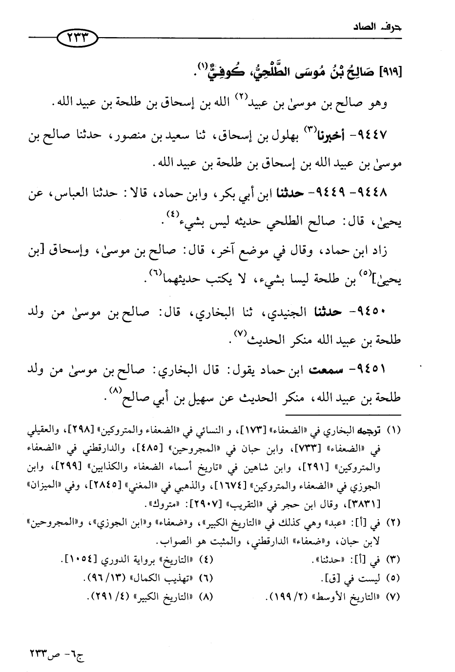 9447 - أخبرنا بهلول بن إسحاق، حَدثنا سعيد بن منصور، حَدثنا صالح بن موسي بن عبد الله (1) بن إسحاق بن طلحة بن عُبيد الله.