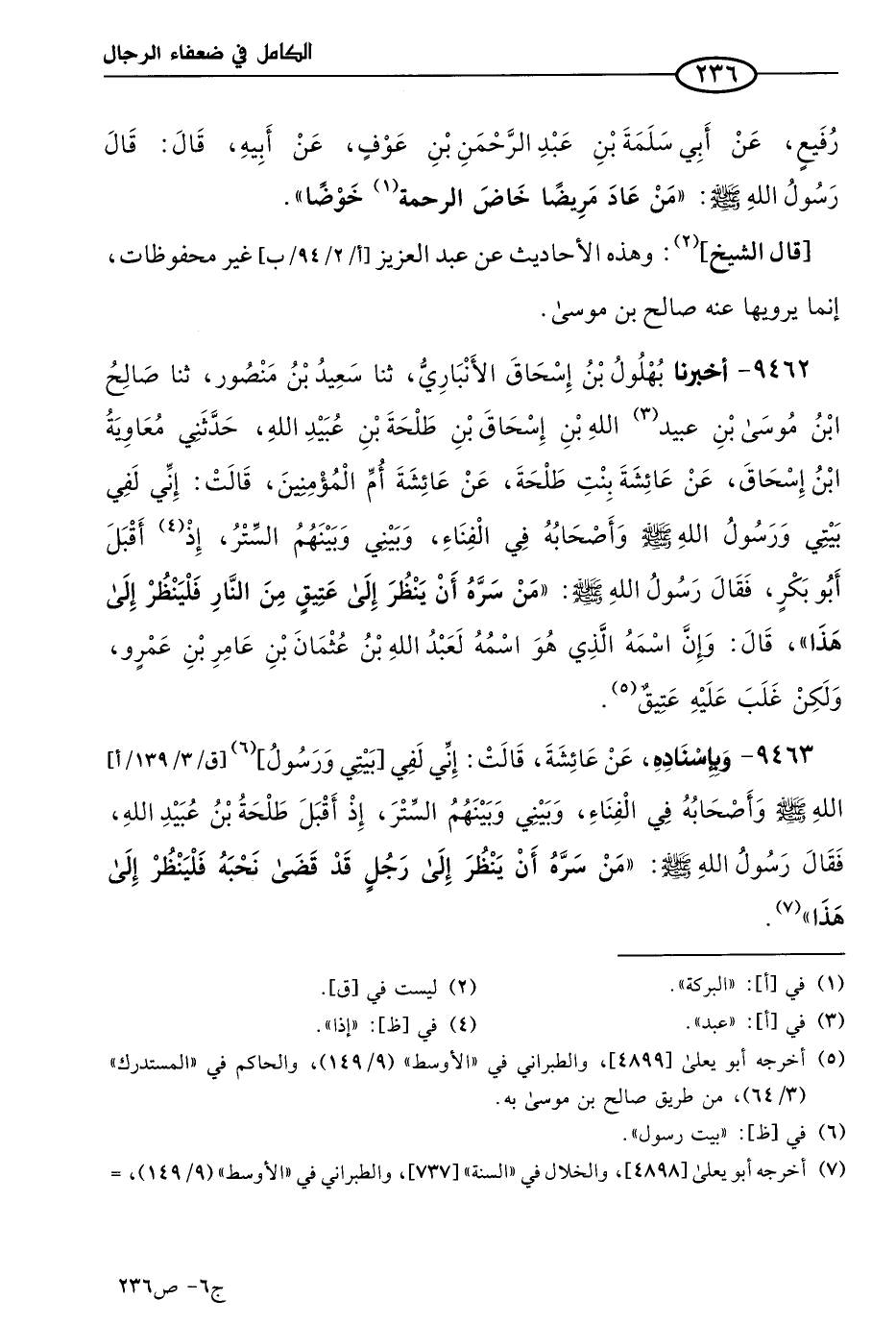 كتاب الكامل في ضعفاء الرجال لابن عدي - الرشد (اسم الجزء: 6)