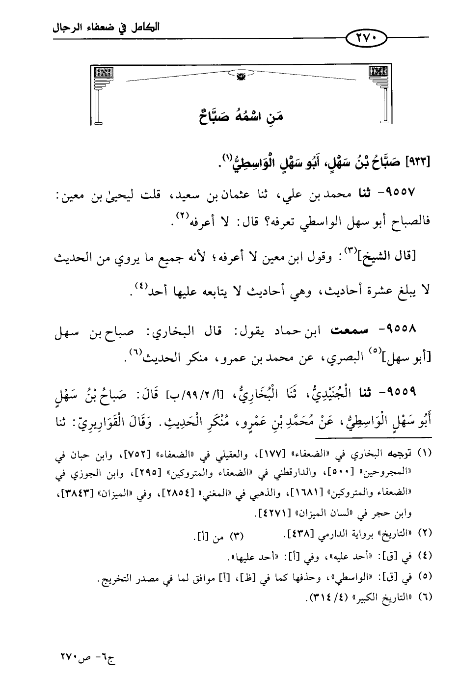 كتاب الكامل في ضعفاء الرجال لابن عدي - الرشد (اسم الجزء: 6)