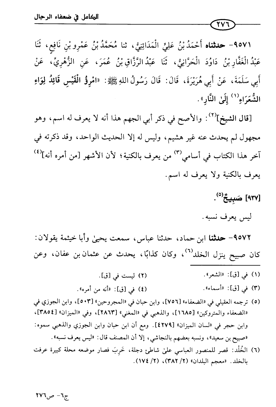 كتاب الكامل في ضعفاء الرجال لابن عدي - الرشد (اسم الجزء: 6)