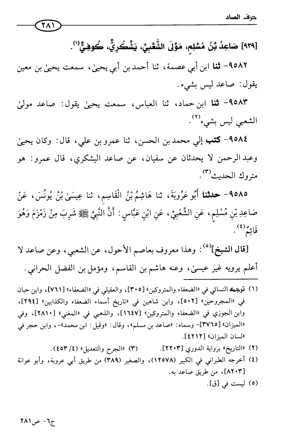 9583 - حَدثنا ابن حماد، حَدثنا العباس سمعت يَحيي يقول: صاعد مولي الشعبي ليس بشَيءٍ.