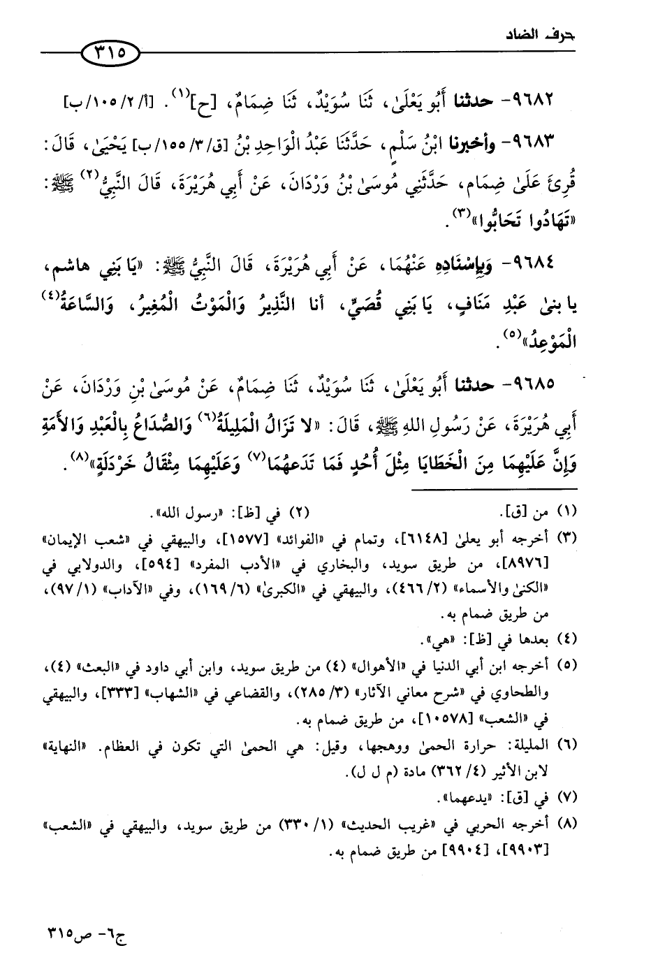 9682 - حَدثنا أَبو يعلي، حَدثنا سويد، حَدثنا ضمام (ح)