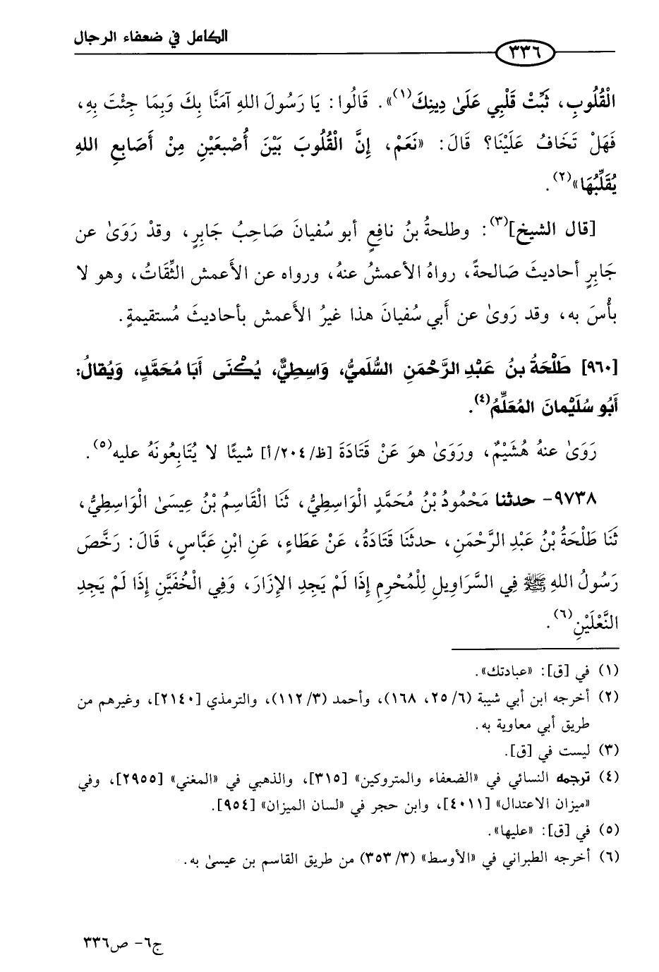 [960] طلحة بن عَبد الرحمن السلمي، واسطي، يُكْنَي أبا مُحمد، ويقال: أَبو سليمان المعلم.