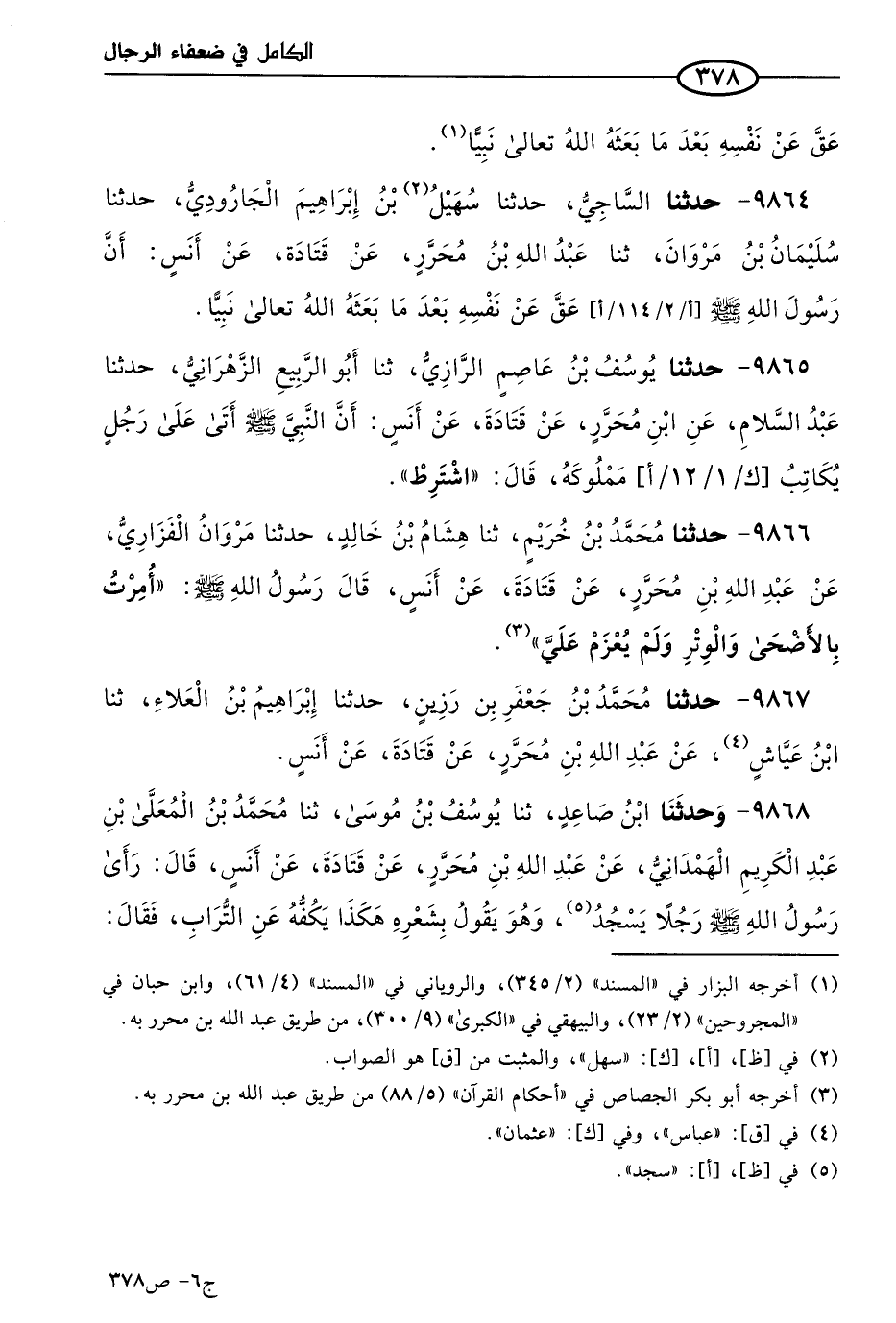 كتاب الكامل في ضعفاء الرجال لابن عدي - الرشد (اسم الجزء: 6)