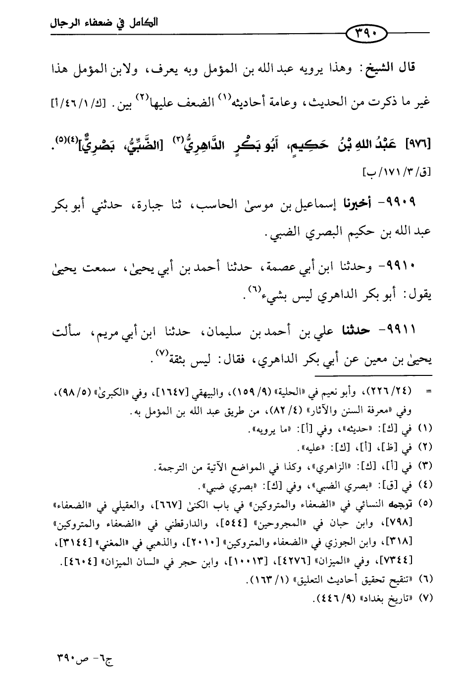 كتاب الكامل في ضعفاء الرجال لابن عدي - الرشد (اسم الجزء: 6)