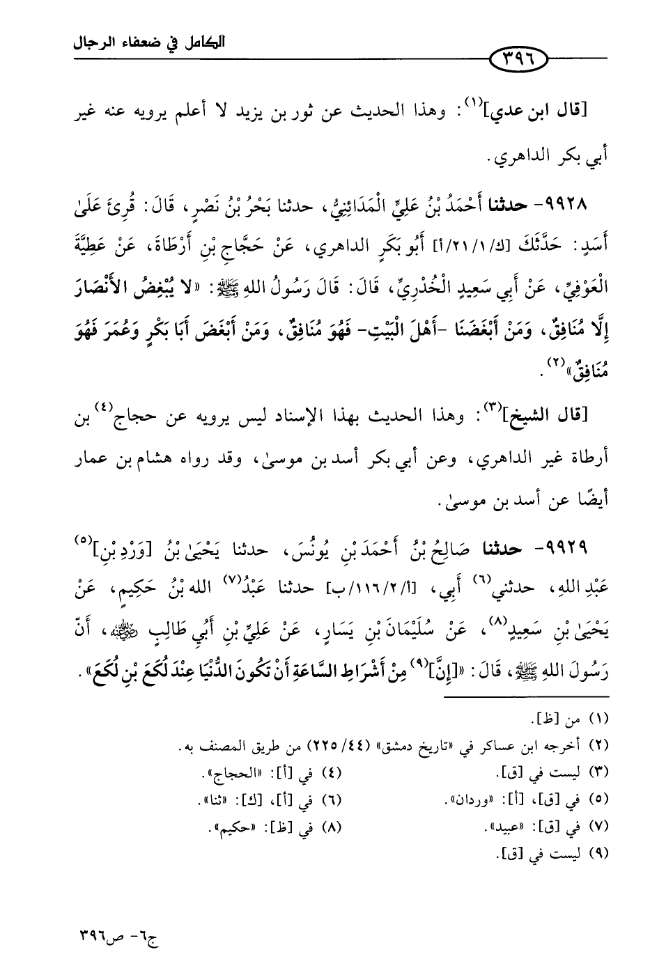 كتاب الكامل في ضعفاء الرجال لابن عدي - الرشد (اسم الجزء: 6)