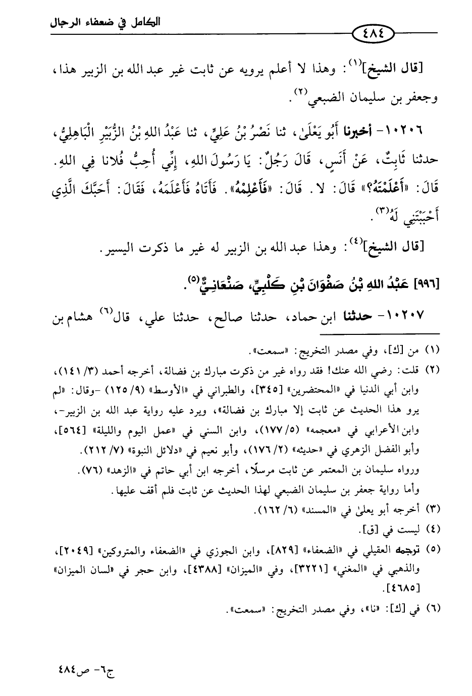 كتاب الكامل في ضعفاء الرجال لابن عدي - الرشد (اسم الجزء: 6)