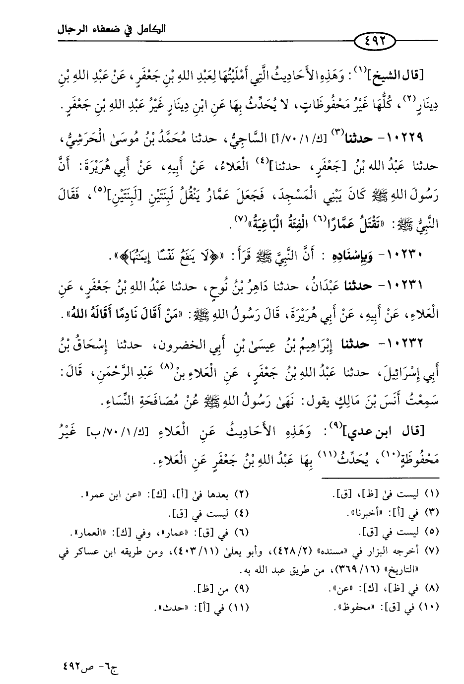 كتاب الكامل في ضعفاء الرجال لابن عدي - الرشد (اسم الجزء: 6)