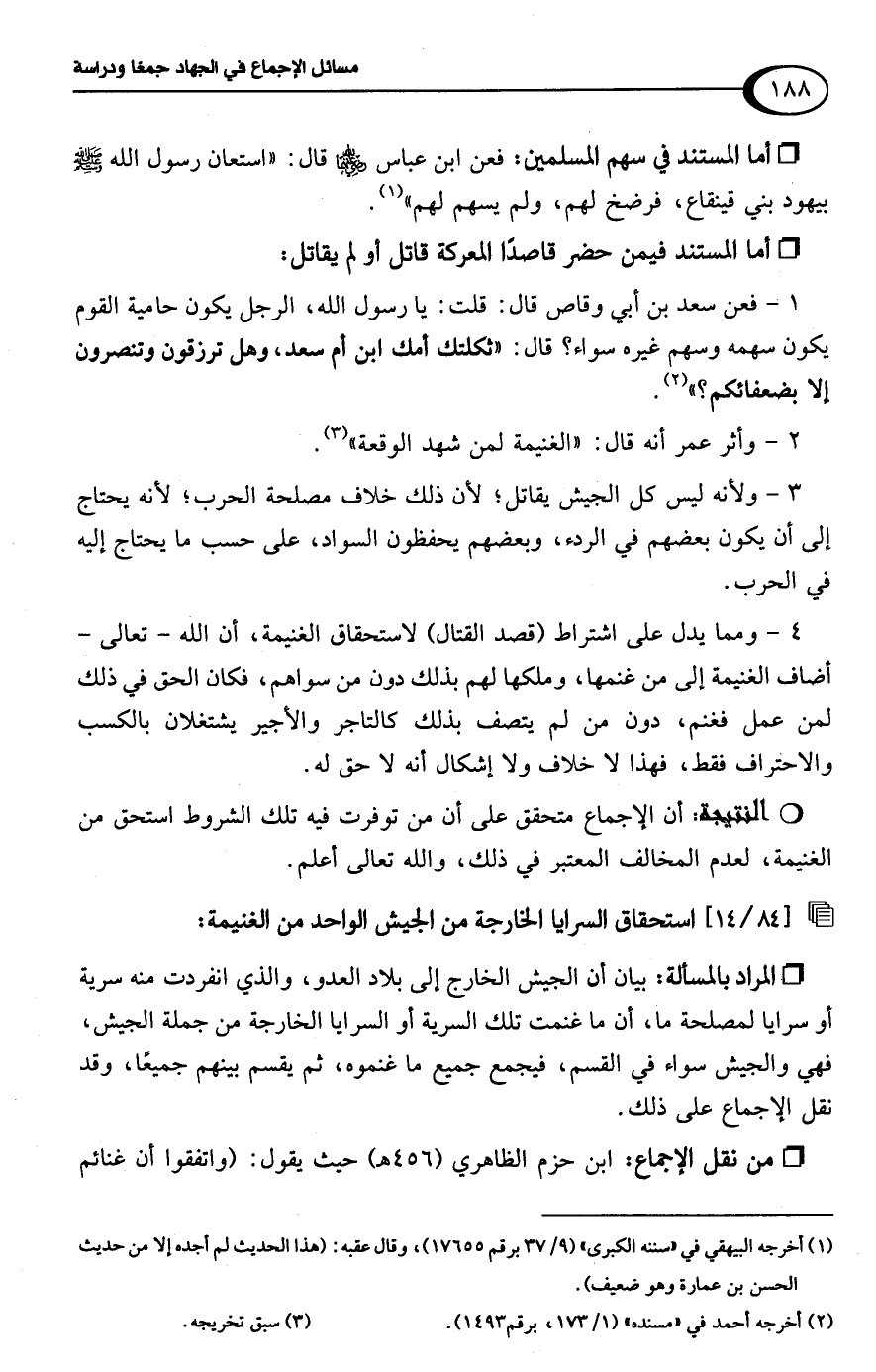 • من نقل الإجماع: ابن حزم الظاهري (456 هـ) حيث يقول: (واتفقوا أن غنائم