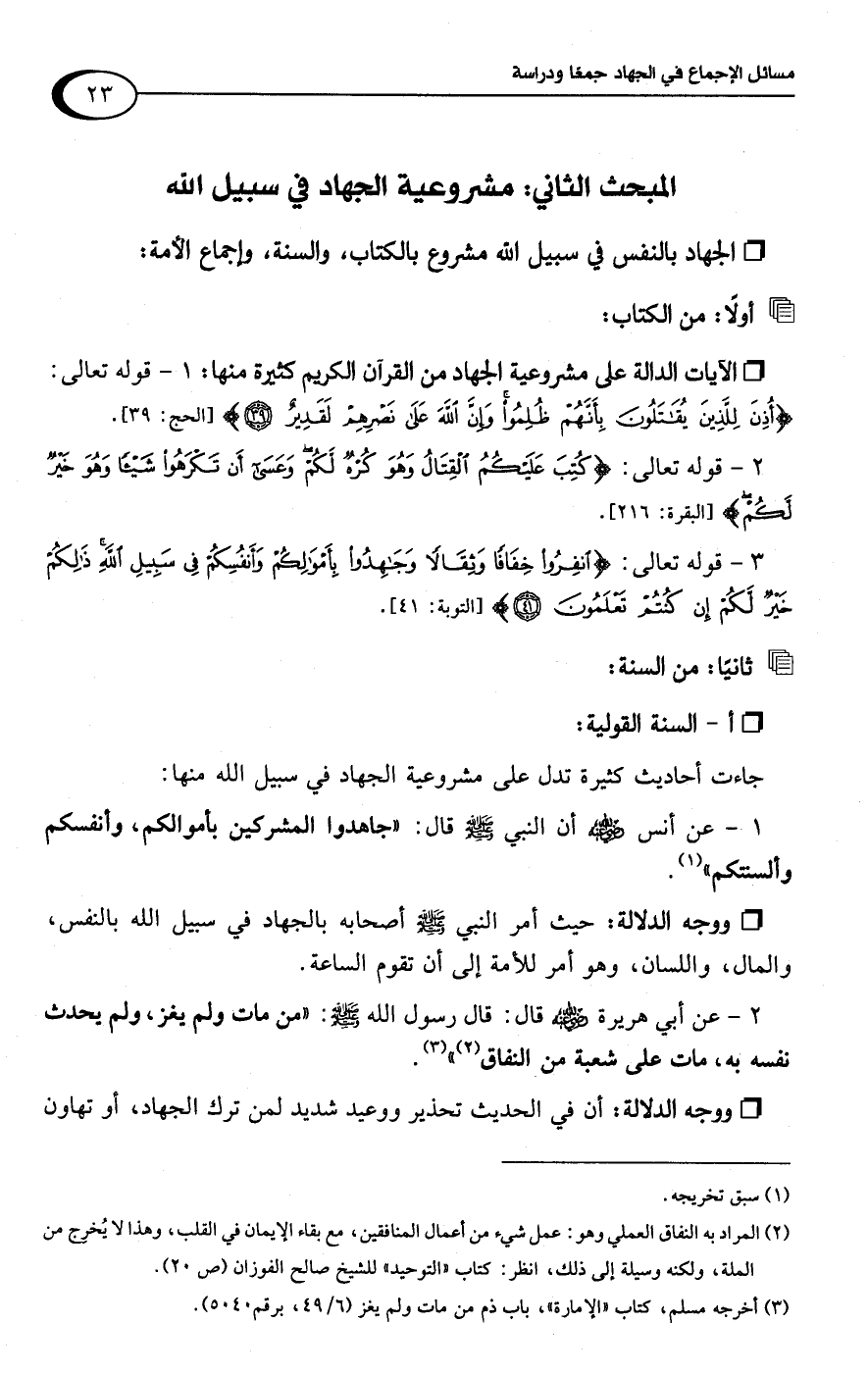 (¬3) أخرجه مسلم، كتاب "الإمارة"، باب ذم من مات ولم يغز (6/ 49، برقم 5040).