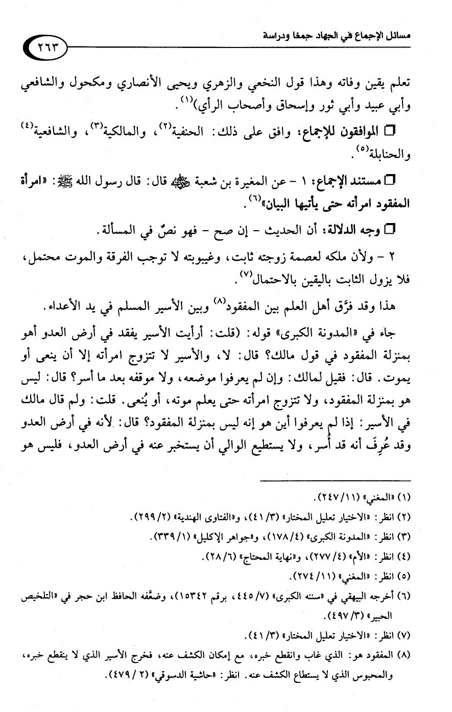 (¬8) المفقود هو: الذي غاب وانقطع خبره، مع إمكان الكشف عنه، فخرج الأسير الذي لا ينقطع خبره، والمحبوس الذي لا يستطاع الكشف عنه. انظر: "حاشية الدسوقي" (2/ 479).