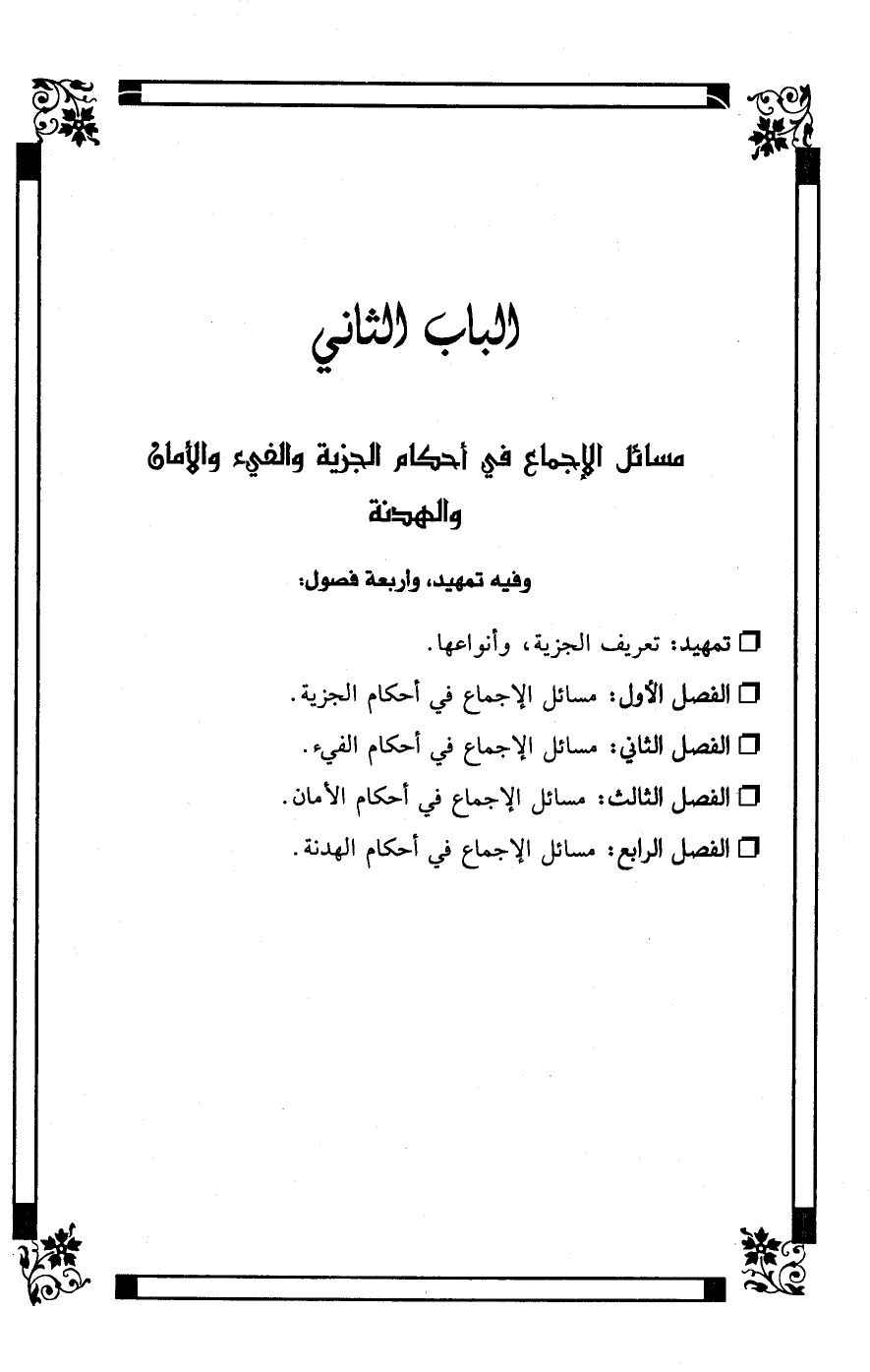 الباب الثاني: مسائل الإجماع في أحكام الجزية والفيء والأمان والهدنة