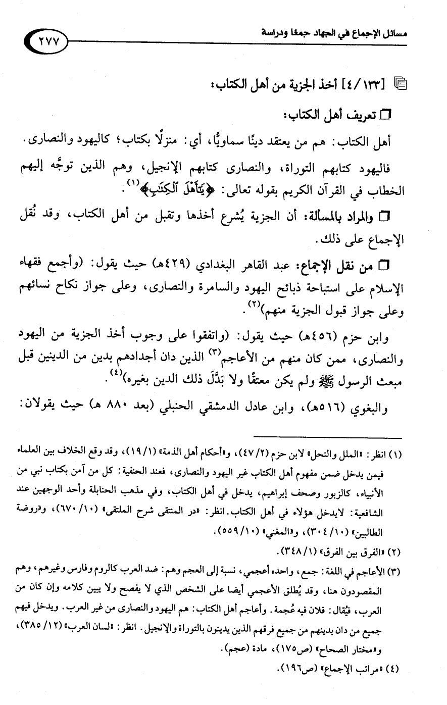 [133/ 4] أخذ الجزية من أهل الكتاب: