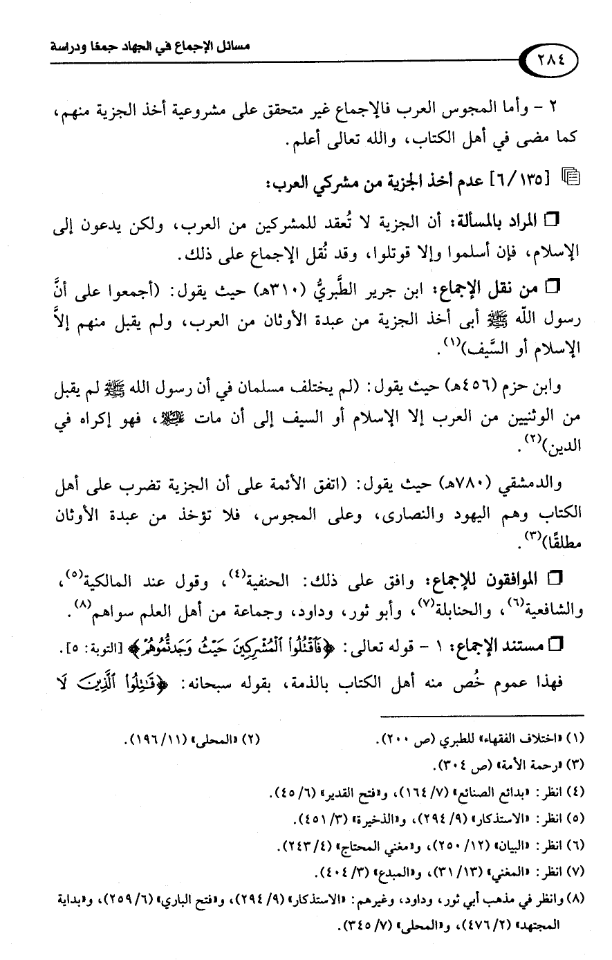 [135/ 6] عدم أخذ الجزية من مشركي العرب: