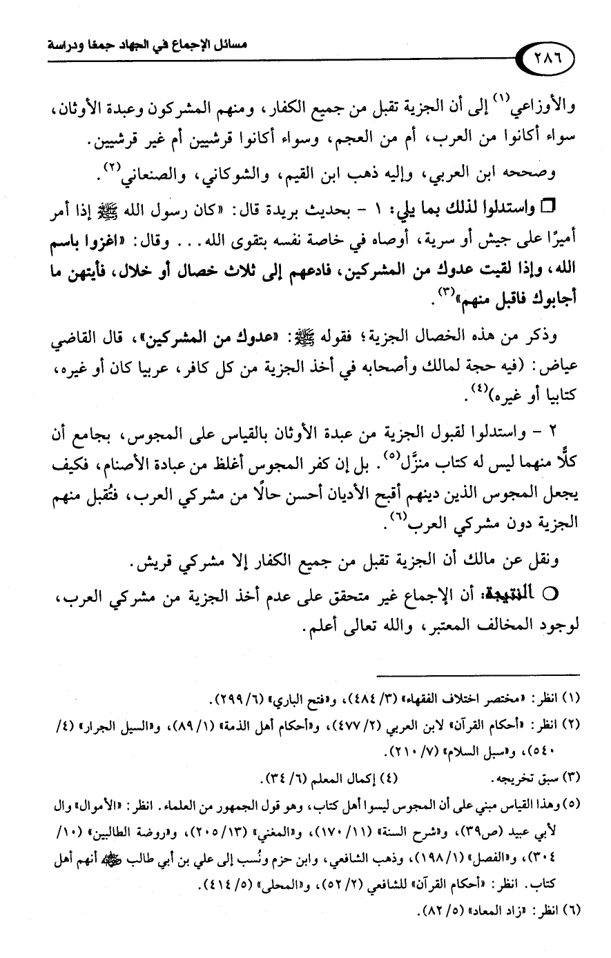 (¬2) انظر: "أحكام القرآن" لابن العربي (2/ 477)، و"أحكام أهل الذمة" (1/ 89)، و"السيل الجرار" (4/ 540)، و"سبل السلام" (7/ 210).