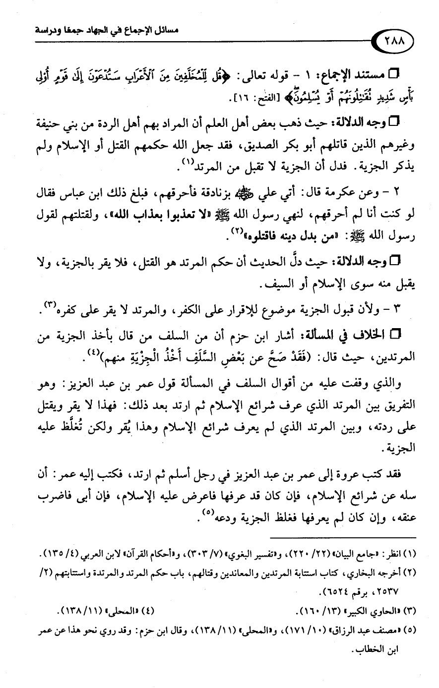 • الخلاف في المسألة: أشار ابن حزم أن من السلف من قال بأخذ الجزية من المرتدين، حيث قال: (فَقَدْ صَحَّ عن بَعْضِ السَّلَفِ أَخْذُ الْجِزْيَةِ منهم) (¬4).