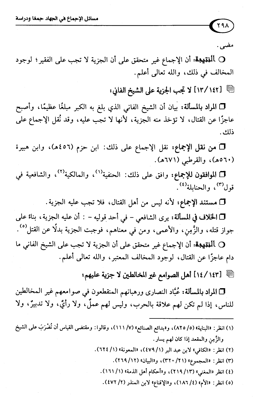 [142/ 13] لا تجب الجزية على الشيخ الفاني:
