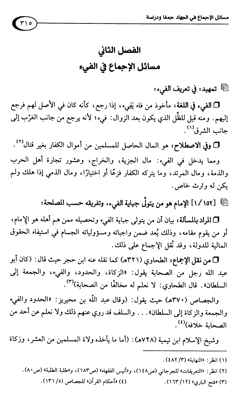 [152/ 1] الإمام هو من يتولَّى جباية الفيء، وتفريقه حسب المصلحة: