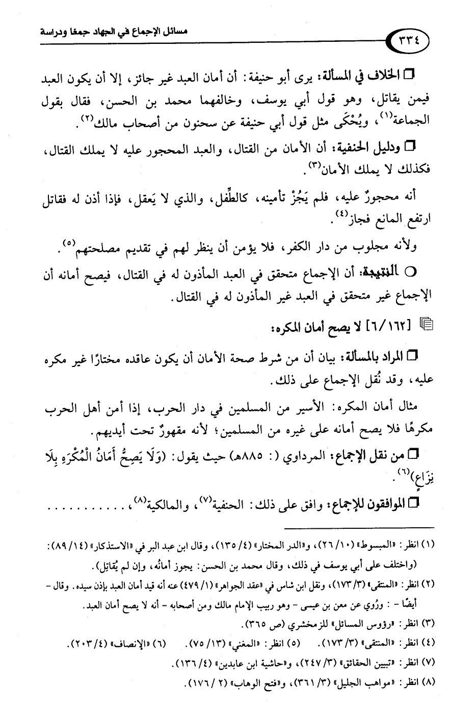 • من نقل الإجماع: المرداوي (: 885 هـ) حيث يقول: (وَلَا يَصِحُّ أَمَانُ الْمُكْرَهِ بِلَا نِزَاعٍ) (¬6).