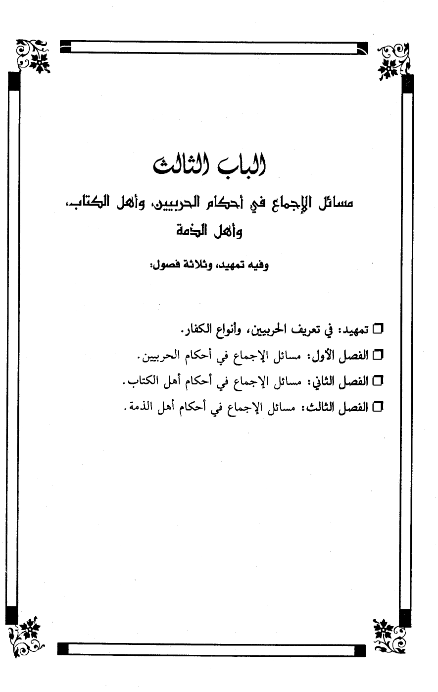 الباب الثالث: مسائل الإجماع في أحكام الحربيين وأهل الكتاب، وأهل الذمة