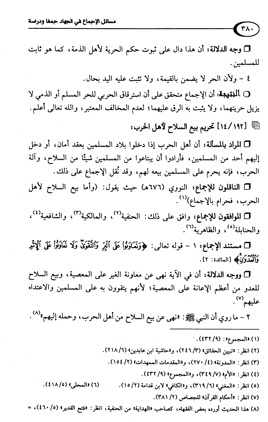 [192/ 14] تحريم بيع السلاح لأهل الحرب: