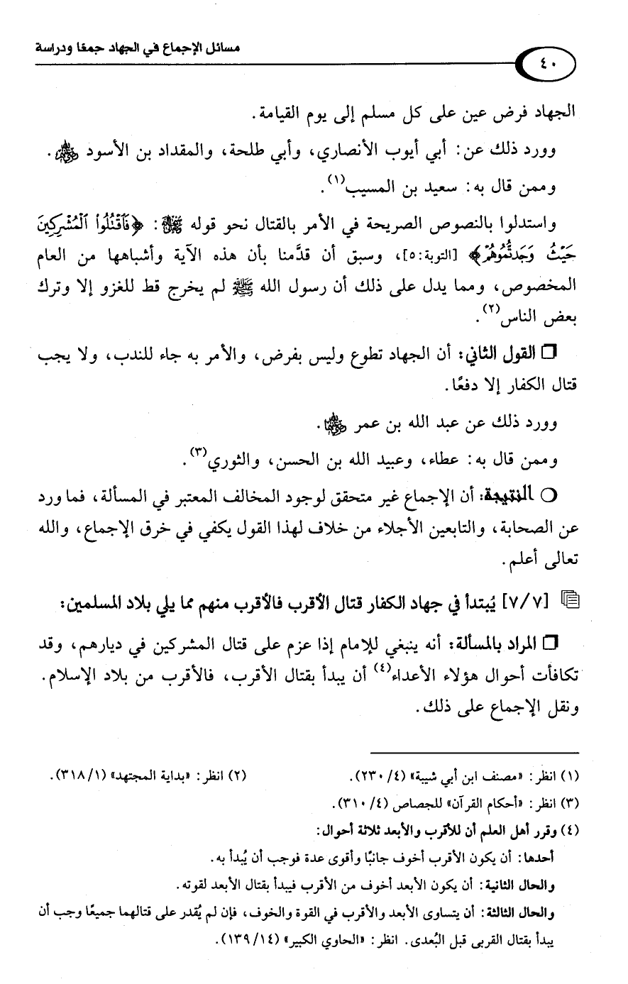 [7/ 7] يُبتدأ في جهاد الكفار قتال الأقرب فالأقرب منهم مما يلي بلاد المسلمين: